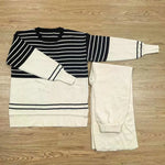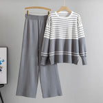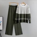 Fashionable Striped Knitted Sweater And Pants Set Loose Casual Autumn Winter New Arrival Women's Commute Style Long Sleeve Trousers