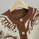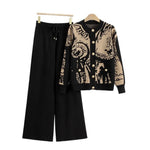 Fashionable Women's Autumn Winter Printed Single-Button Wide Leg Pants Round Neck Slimming Knitted Two-Piece Set Casual Style