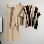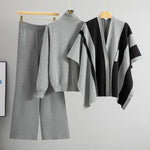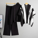 French Lazy Striped Sweater Wrap Wide Leg Pants Three Piece Set Fashionable Women's Autumn Casual Wear Comfortable Polyester Blend