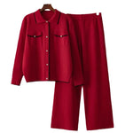 French Polo Collar Knitted Sweater Women Autumn Winter Fashion Casual Set Long Sleeve Necktie Style Comfortable Commute Look