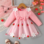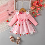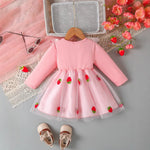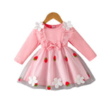 Girls Knitted Long Sleeve Dress Autumn Winter New Style Floral Netting Splicing Pure Color Baby Doll Skirt Infant Clothing