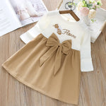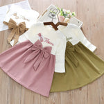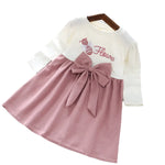 Girls Printed Long Sleeve Dress Children's Clothing Spring Autumn Season Sweet Style Knitted Fabric Small Kids Dress