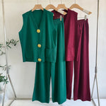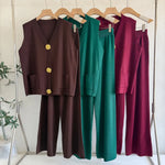 Gold Button V-Neck Knitted Vest And Loose Pants Two-Piece Set For Women Casual Comfortable Fashionable Street Style