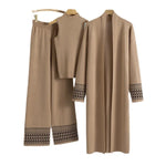 Ladies Knitted Three-Piece Set Casual Style Long Sleeve Sweater Cardigan Wide Leg Pants Autumn Winter Fashion Leisure Ensemble