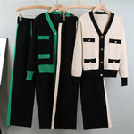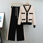 New Knitted Slim Fit V-Neck Sweater And Wide Leg Pants Set Women's Fashion Casual Two-Piece Suit Anti-Aging Sweater Set