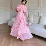 Pattern: Printing Design: Printing Fabric Type: Polyester,Chiffon Neckline: Round Neck,Basic Model Sleeve Length: Long Sleeve Sleeve Type: Regular Sleeve Dress Length Type: Maxi Long Dress Style: Elegant Style,Temperament Commuter Dresses Type: Princess Dress Waist Line:...