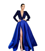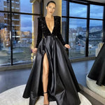 Party Dress Elegant Deep V Sequins Long Sleeve Solid Color Maxi Long Dress Cocktail Party