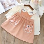 Princess Style Long Sleeve Dress For Baby Girls Autumn Fashionable False Two-Piece Dress Sweet Grid Pattern Knitted Fabric