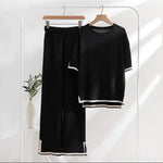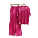 Retro Lazy Style Color Block Knitted Set Women Loose Versatile Round Neck Top High Waist Slimming Pants Two Piece Trendy Outfit