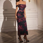 Sexy Backless One Shoulder Pleated Fishbone Netting Dress Bodycon Long Gown European Style Street Fashion High Street