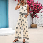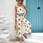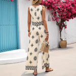 Spring Summer Thin Breathable Floral Print Tank Top And Wide Leg Pants Elastic Waist Two Piece Set Elegant Casual Outfit For Women