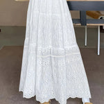 Spring Summer Women's French Style Heavy Embroidery Elastic Waist Hip Covering Slimming Small Size White Half-length Skirt