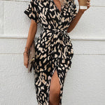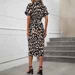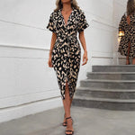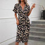 Spring Summer Women's Short Sleeve Floral Print Dress European Style V-neck Gown Polyester Lycra Fabric A-line Skirt Dress