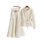Spring Women's Fashion Casual Set Simple Versatile Skirt Top Matching Elegant Commute Style Polyester Long Sleeve Macaron Color