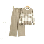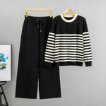Striped Knit Sweater Set Women Loose Wide Leg Pants Two Piece Set Fashionable Autumn Winter New Style Casual Comfortable Outfit