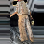 Summer 2025 Fashion Casual Floral Print Women's Clothing Set Long Pants Top Bottoms Ensemble Polyester Blend Regular Sleeve