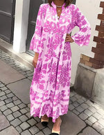 Summer Casual Floral Print Women's Dress Stand Collar Bell Sleeve Polyester Elegant Commute Style Seven Sleeve Length