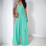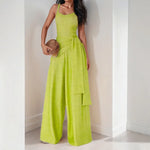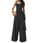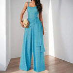 Summer New Casual Versatile Refreshing Sleeveless Waist-Cinching Backless Loose Wide-Leg Jumpsuit Elegant Style Straight Leg