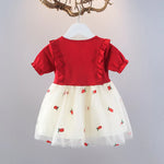 Summer Princess Style Girls Cotton Dress With Butterfly Knots And Fly Sleeve Embroidered Floral Pattern Soft Fabric One Year Old