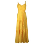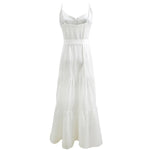 Summer Women's European Style V-neck Splice Sleeveless Dress Sexy Style Pure Color Polyester Fabric Gown With Buttons