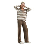 Summer Women's Knitted Two-Piece Set Polo Collar Casual Striped Design Versatile Comfortable Breathable Leisure Outfit