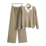 Thickened Twisted Sweater Set Women's Autumn Winter Polo Collar Fake Two-Piece Knitted Wear With Wide Leg Pants Two-Piece Set