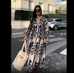 women's a-line skirt bohemian standing collar printing pleated long sleeve geometric maxi long dress holiday