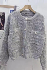 Placket Type: Single Breasted Pattern: Solid Color Design: Button Occasion: Daily Fabric Type: Polyester Neckline: Round Neck Sleeve Length: Long Sleeve Style: Casual Season: Winter,Autumn Top Length: Short Fit Type: Regular Fit Tops Type: Cardigan...