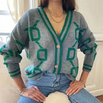 Pattern: Color Block Design: Button Occasion: Daily Fabric Type: Knit Sleeve Type: Regular Sleeve Top Length: Regular Tops Type: Cardigan Gender: Women'S Placket Type: Single Breasted Neckline: V Neck Sleeve Length: Long Sleeve Style: Fashion...
