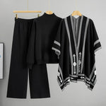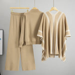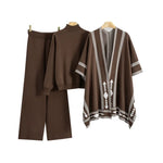 Women's Classic Knitted Warm Shawl Three-piece Set Autumn Winter Fashion Casual Outfit Abstract Pattern Long Sleeve Long Pants