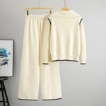 Women's High Collar Sweater Set With Zipper Autumn Winter Fashion Casual Plaid Polyester Rayon Blend Long Sleeve Outfit