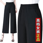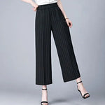 Women's High Waist Wide Leg Pants Summer Thin Elastic Casual Mom Pants Straight Cut Loose Plus Size Striped Drapey Trousers