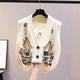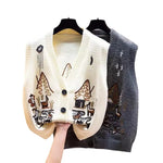 Women's Knitted Sweater Vest Loose V-neck Spring Autumn Open Cardigan Fashion Outerwear Casual Style Animal Pattern Single Button