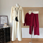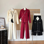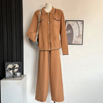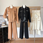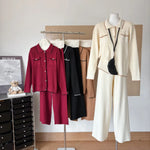 Women's Polo Neck Knitted Sweater Set Casual Fashion Autumn Winter Long Sleeve Shirt Style Polyester Acrylic Commute Suit