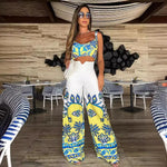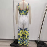 Pattern: Printing Occasion: Beach Fabric Type: Polyester Sleeve Length: Sleeveless Pants Length: Full Length Pants Type: Jumpsuits Style: Vacation Season: Summer Fit Type: Regular Fit Waist Line: High Waist Gender: Women's Weight: 470g