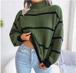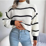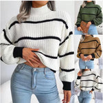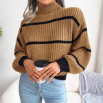 Placket Type: Pullovers Pattern: Stripe Occasion: Daily Fabric Type: Polyester,knit Neckline: Turtleneck Sleeve Length: Long Sleeve Sleeve Type: Bishop Sleeve Style: Casual Season: Winter,Autumn Top Length: Regular Fit Type: Regular Fit Tops Type: Sweater Gender:...