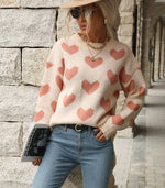 Pattern: Heart Shape Design: Jacquard Occasion: Daily Fabric Type: Polyester Sleeve Type: Regular Sleeve Top Length: Regular Version: Loose Tops Type: Sweater Gender: Women's Placket Type: Pullovers Neckline: Round Neck Sleeve Length: Long Sleeve Style:...