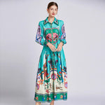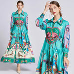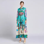 Women's Swing Dress Vintage Style Turndown Printing Long Sleeve Printing Maxi Long Dress Daily