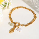 Basic Sweet Commute Shell 304 Stainless Steel 18K Gold Plated Cuban Link Chain Curb Chain Multi Charms Bracelet Bracelets In Bulk