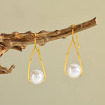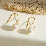 Geometric Pearl Embedded 18K Gold Plated Stainless Steel Earrings Fashionable Elegant Women's Jewelry For Various Occasions