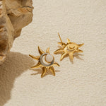 Ladies Designer Classic Style 18K Gold Stainless Steel Moonstone Sun Earrings And Adjustable Open Ring Jewelry Set For Travel