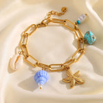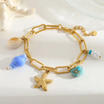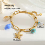 Romantic Sweet Starfish 304 Stainless Steel 18K Gold Plated Paperclip Chain Bracelets In Bulk