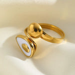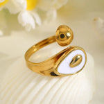 Ring Size: Adjustable Pattern: Enamel Plating Material: 18K Gold Plated Design: Enamel Quantity: 1 Piece Color: White,Gold Occasion: Casual,Daily,Date Material: 304 Stainless Steel Classification: Rings Style: Elegant,Basic,Commute Season: All Seasons Gender: Women's Weight: 6g