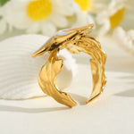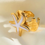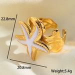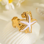 Ring Size: Adjustable Pattern: Starfish Plating Material: 18K Gold Plated Gold Plating Process: Ion Plating (IP) Craft: Waterproof Non Tarnish,Starfish,Enamel Color: White,Gold Occasion: Banquet,Beach Gender: Women's Quantity: 1 Piece Material: 304 Stainless Steel Classification: Rings...