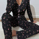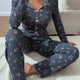 Casual Floral Print Long Sleeve Sleepwear Two-Piece Set For Women Home Outdoor Wearable Comfortable Breathable Polyester Fabric