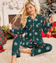 Christmas New Year Festival Women's Long Sleeve Collared Open Cardigan Sleepwear Set Casual Breathable Home Clothes Ensemble