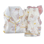 Cloud Cotton Ladies Summer Thin Short Sleeve Sleepwear Set Cartoon Moon Bear Design Home Clothes Casual Breathable Comfortable