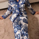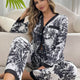 Elegant Watercolor Print Sleepwear Set Long Sleeve Loungewear Pants Women's Fashionable Outfit Home Outdoor Versatile Clothing