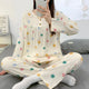 Eynishirt Women's Long Sleeve Cotton Silk Sleepwear Casual Home Clothes Summer Breathable Comfortable Women's Home Suit