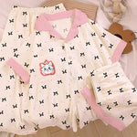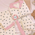 French Mary Cat Cloud Cotton Women's Summer Sleepwear Short Sleeve Home Clothes Three-piece Set Breathable Casual Sleepwear